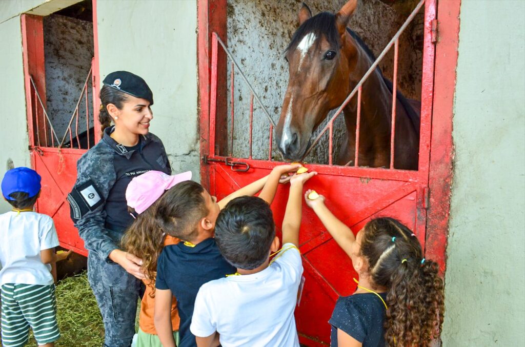 Alunos da Escola Municipal de Ensino Fundamental João Carlos D’Avila Paixão Cortes, com idades entre 6 e 11 anos, participaram de uma visita educativa ao 4º Regimento de Polícia Montada (4º RPMon) – Regimento Bento Gonçalves, em Porto Alegre, na manhã desta quarta-feira (17/12).